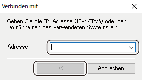 - Geben Sie die IP-Adresse (IPv4/IPv6) oder den Domain-Namen des Systems ein und klicken Sie auf [OK].